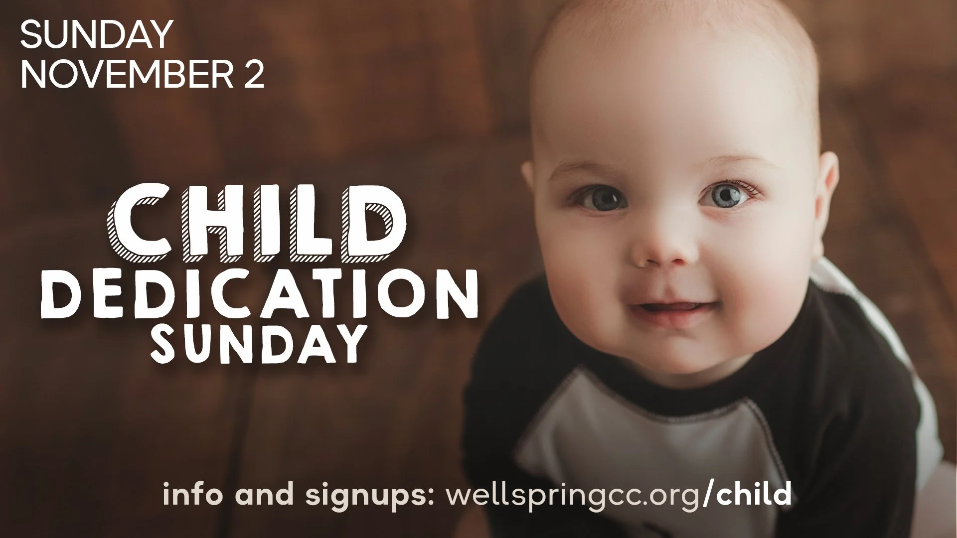 Before the Service: Wellspring Church will announce plans for a Child Dedication service several weeks in advance. In this time, you are invited to register to be a part of this service online. You are also encouraged to notify any family members and loved ones you would like to come bear witness to this dedication. We create a slide with a picture of the family, a certificate of dedication, and a letter for each child to be opened on his or her 13th birthday. For the slide we need you to provide a family photo, a full name and date of birth of each child you'd like to dedicate.